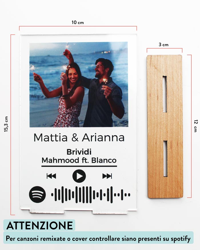 - Scegli la vostra canzone del cuore da riprodurre con il codice Spotify: Personalizza la targhetta con il codice Spotify della vostra canzone del cuore.
