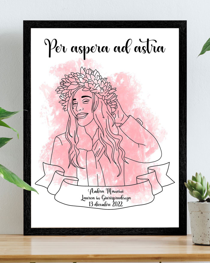 Stupisci la laureata del tuo cuore con questo delizioso ritratto digitale che viene realizzato da una giovane artista a partire dalla tua foto. Un ritratto digitale è quello che ci vuole per fissare per sempre il momento della laurea: un passaggio importante che merita di essere celebrato con un regalo unico e originale!