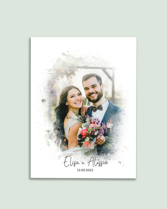 Per rendere il tuo acquerello ancora più personale, puoi aggiungere una dedica speciale in calce all’immagine, perfetto per commemorare occasioni come matrimoni, anniversari o altri eventi significativi.