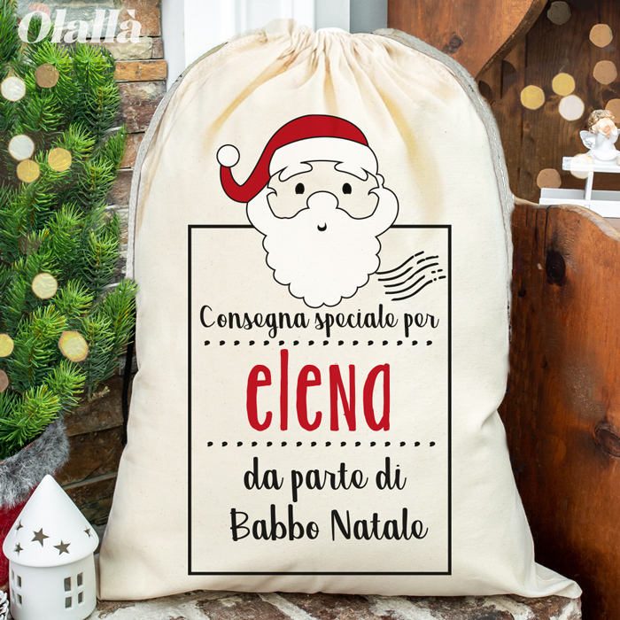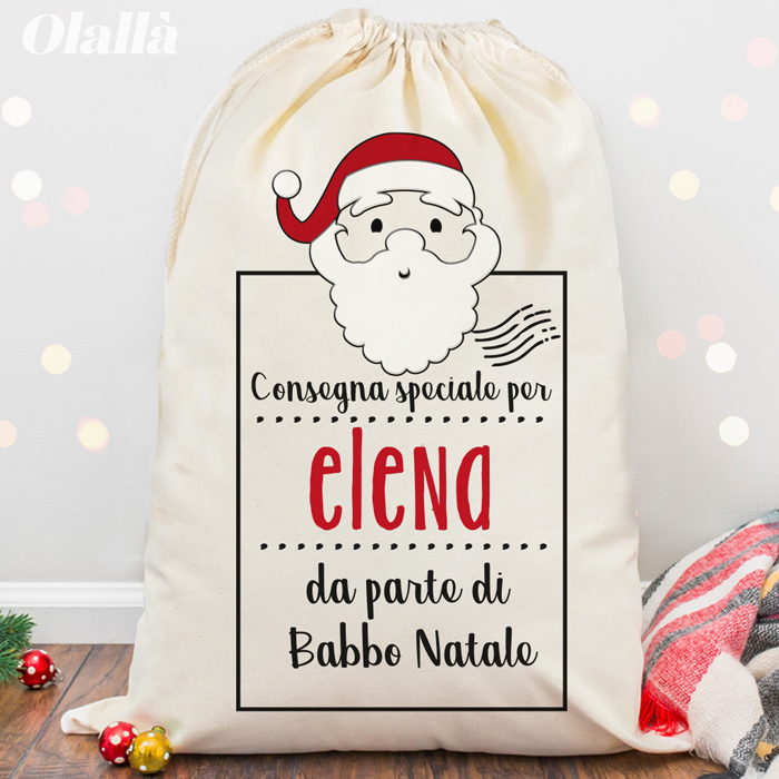 Sacca in 100 % cotone super resistente (200 g/m²) con chiusura a coulisse con cordino perfetta per contenere i tuoi doni natalizi ed arredare con stile la tua casa questo Natale.