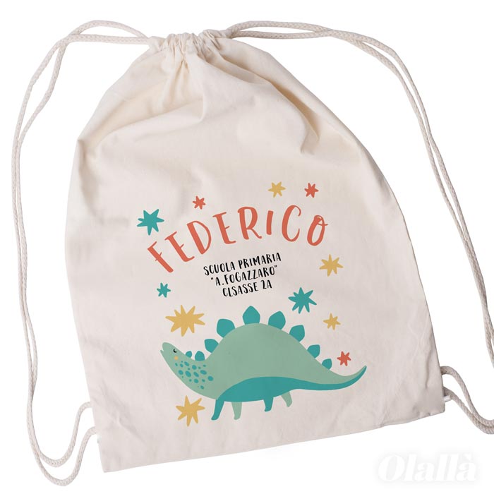 Borsa zainetto da scuola materna, adatta anche per le scarpine da ginnastica o altro materiale scolastico o sportivo. Cotone 100%. Tessuto spesso 140 gr.