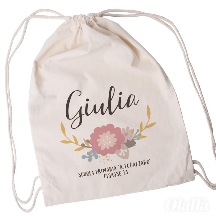 Borsa zainetto da scuola materna, adatta anche per le scarpine da ginnastica o altro materiale scolastico o sportivo. Cotone 100%. Tessuto spesso 140 gr.