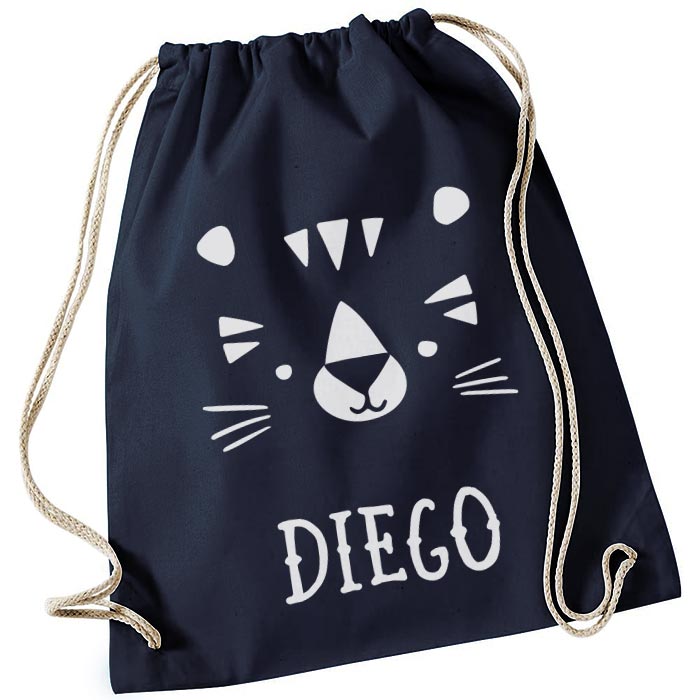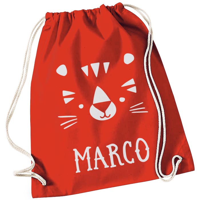Semplice ma super utile sacca zainetto per la scuola personalizzata con il nome del bambino e la simpatica sagoma di un tigrotto. Realizza lo zainetto perfetto per la scuola materna, l’asilo nido o per lo sport, il corso di musica, il catechismo del tuo bambino…