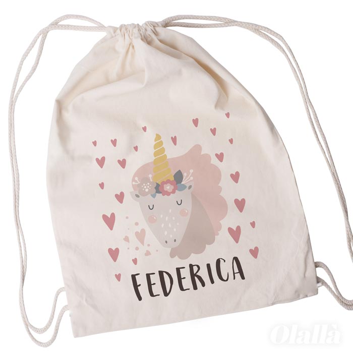Borsa zainetto da scuola materna, adatta anche per le scarpine da ginnastica o altro materiale scolastico o sportivo. Cotone 100%. Tessuto spesso 140 gr.