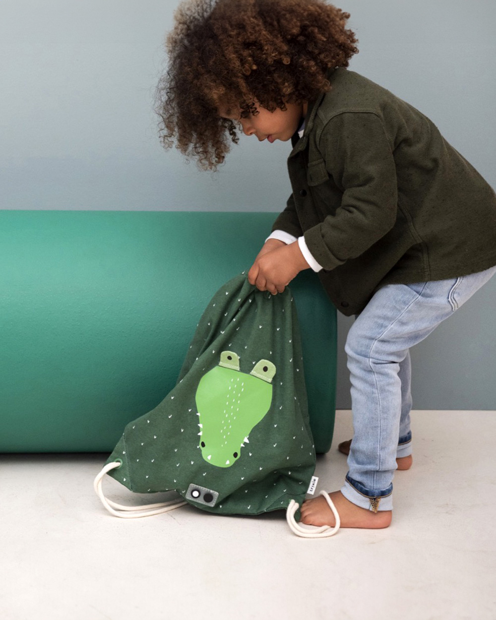 2. Design Unico e Dettagli Curati: la sacca presenta un’adorabile grafica del coccodrillo, con dettagli minuziosi che attirano l’attenzione, facendo viaggiare l’immaginazione. La buffa faccia del coccodrillo e il ricamo preciso del nome rendono ogni pezzo unico e personale, riflettendo la personalità giocosa e avventurosa dei più piccoli.