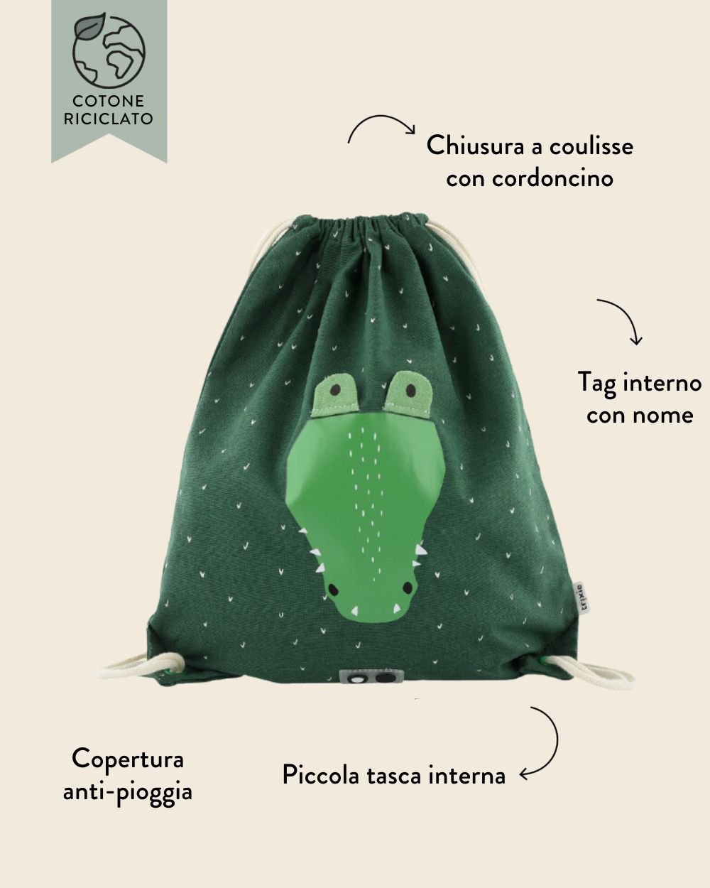 Sacca Zainetto con Coccodrillo Mr Crocodile, Personalizzata con Nome – Idea Regalo Bambino, Asilo e Scuola, Ritorno a Scuola