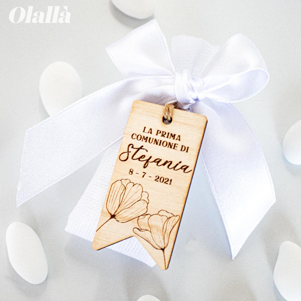 1 recensione per Sacchettino Portaconfetti con Tag in Legno Personalizzata con Tulipani