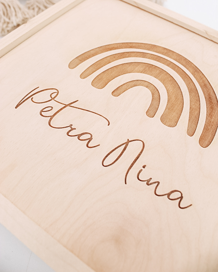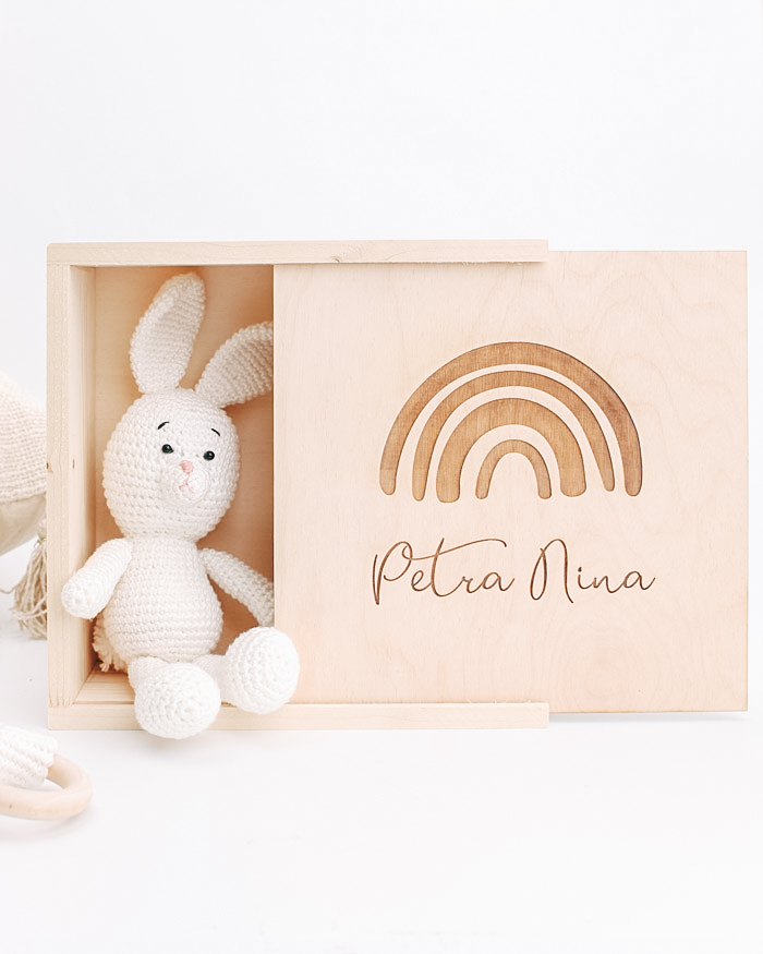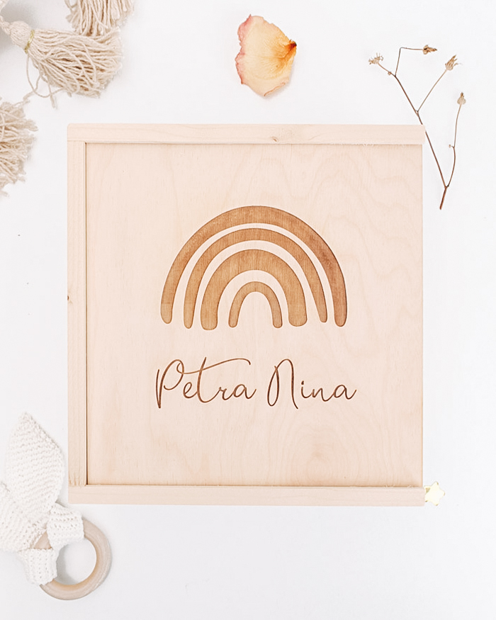 Tenerissima scatola memory box dei ricordi con simpatico arcobaleno inciso perfetta per conservare i ricordi del vostro bimbo o bimba. Con questa delicata scatola in legno i momenti più belli della gravidanza e dei primi mesi del piccolino rimarranno indelebile e occuperanno un posto speciale nel cuore dei neo genitori.
