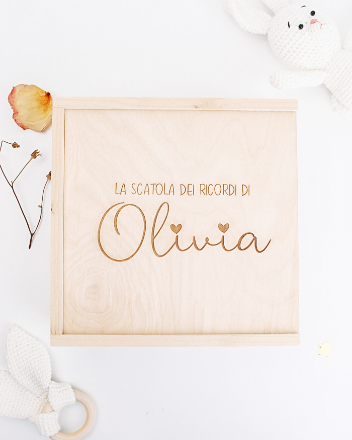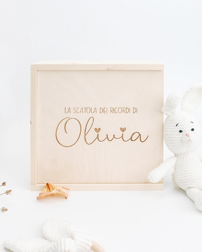 Tenerissima scatola memory box dei ricordi perfetta per custodire i ricordi del vostro bimbo o bimba. Con questa delicata scatola in legno i momenti più belli della gravidanza e dei primi mesi del piccolino rimarranno indimenticabili.