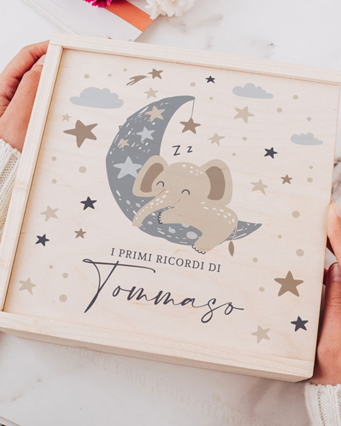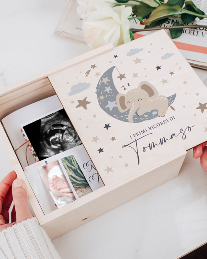 Questa bellissima scatola memory box sarà perfetta per raccogliere tutti i ricordi del bambino appena arrivato. La scatola è personalizzabile con una dedica sul coperchio e con il nome del neonato e sarà perfetta come regalo per una neomamma. Conserva tutti i ricordi di questo bellissimo momento dentro questa “capsula del tempo” che i genitori potranno comporre insieme per creare un ricordo indelebile del bimbo appena arrivato in città.