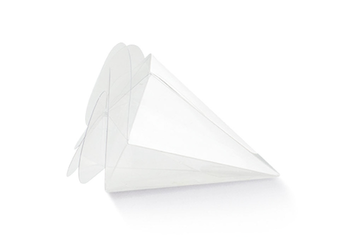 Set di 10 scatole a forma di cono gelato con chiusura a spirale, in pvc plastica trasparente, ideali per contenere in maniera originale i confetti, caramelle o piccoli oggettini. Perfette anche per decorare la tua venue e l’angolo confettata. Diametro 8 cm.
