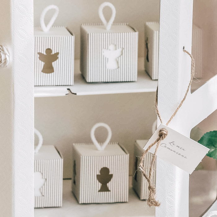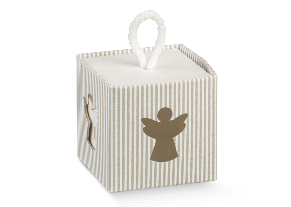 Set di 10 Scatoline con disegno dell’angelo color tortora in cartoncino, ideali per contenere confetti, piccoli oggetti e dolcetti. Perfette come bomboniera per il tuo matrimonio e per tutte le tue cerimonie importanti. Disponibile in varie colorazioni.
