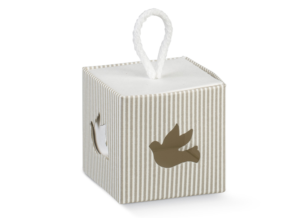 Set di 10 Scatoline con disegno della colomba color tortora in cartoncino, ideali per contenere confetti, piccoli oggetti e dolcetti. Perfette come bomboniera per il tuo matrimonio e per tutte le tue cerimonie importanti. Disponibile in varie colorazioni.