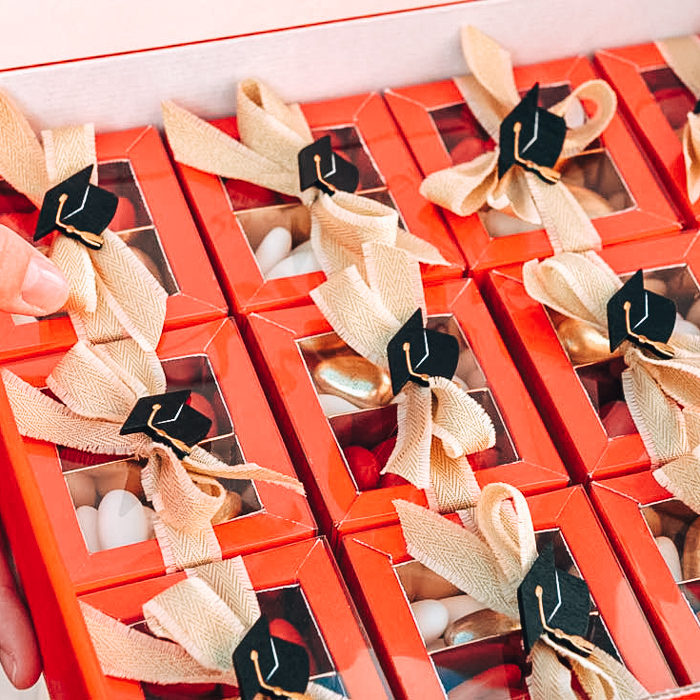 Set di 10 Scatoline in cartoncino rosso e oro con separatore in cartoncino accoppiato. Perfette per contenere confetti, praline e dolcetti per la bomboniera della tua laurea, ma anche del tuo matrimonio e di tutte le tue cerimonie. Disponibile in vari colori sul nostro sito.