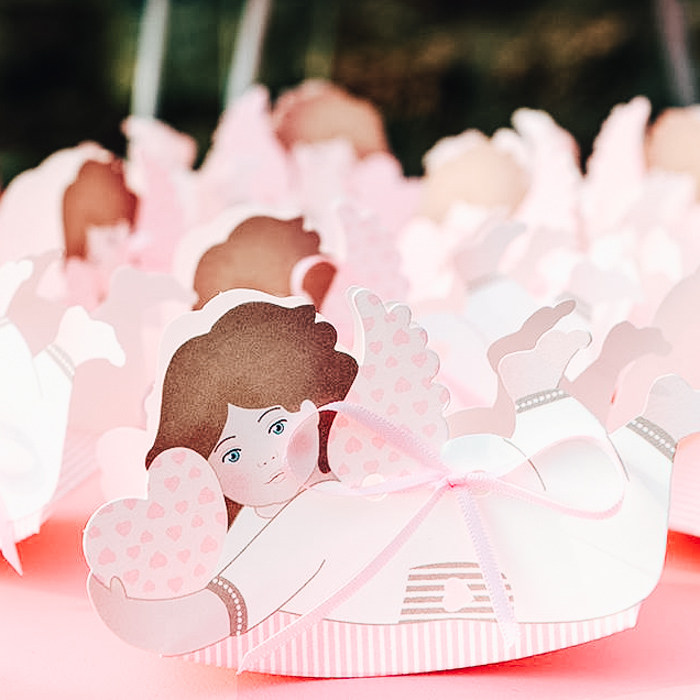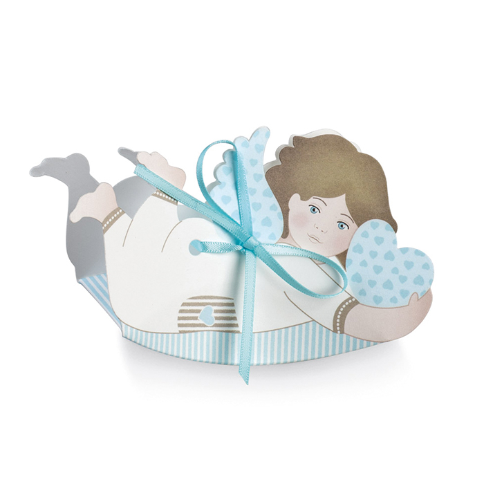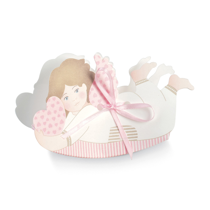 Bellissimo set di 10 Scatoline a forma di Angioletto disponibile in Azzurro e in Rosa. Perfette per contenere confetti, praline o dolcetti. Ideale come bomboniera per il battesimo, per la comunione e per tutte le tue cerimonie.