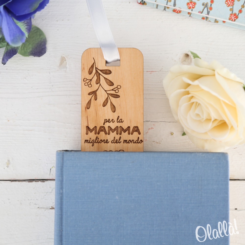 - UN BELLISSIMO SEGNALIBRO IN LEGNO PERSONALIZZABILE CON INTESTAZIONE E FRASE perfetto per sorprendere la tua mamma nel giorno della sua Festa!