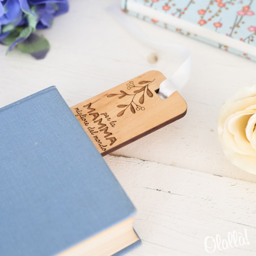 Splendido segnalibro personalizzabile in legno, perfetto come regalo per la Festa della Mamma, il compleanno o qualunque altra ricorrenza che desideriate festeggiare insieme!