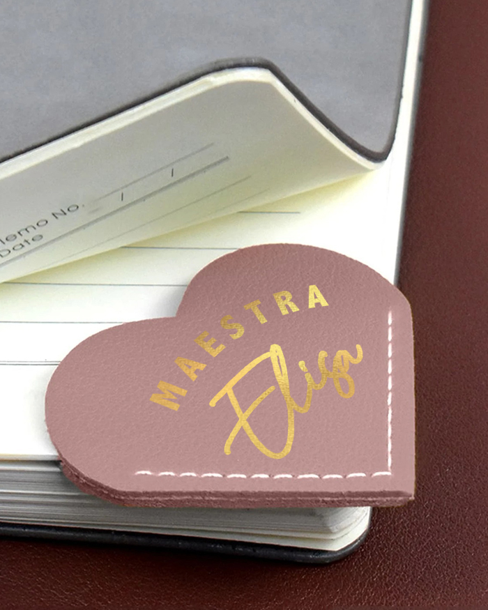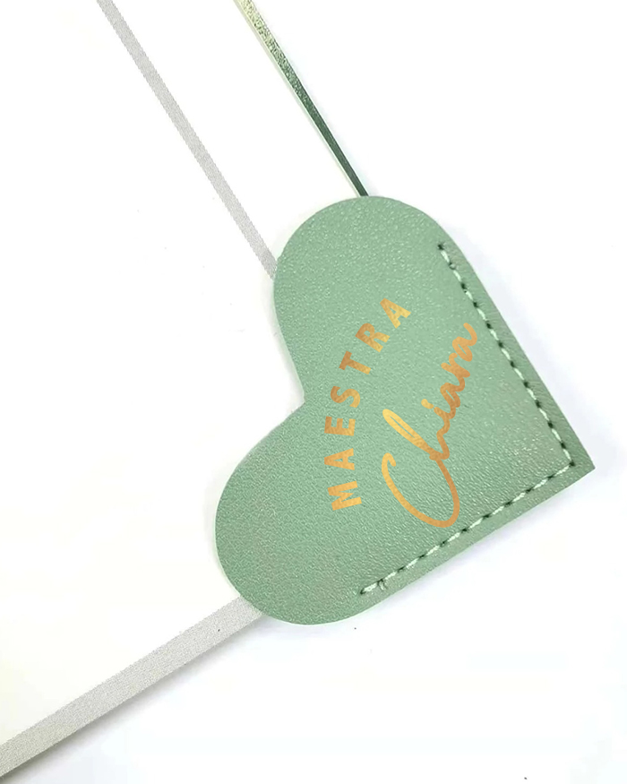 Un regalo unico e significativo per la tua maestra preferita, il nostro Segnalibro Personalizzato in Ecopelle a Cuore è un omaggio perfetto per mostrare il tuo apprezzamento. Realizzato con una combinazione di stile, qualità e sostenibilità, questo segnalibro è tanto elegante quanto utile.