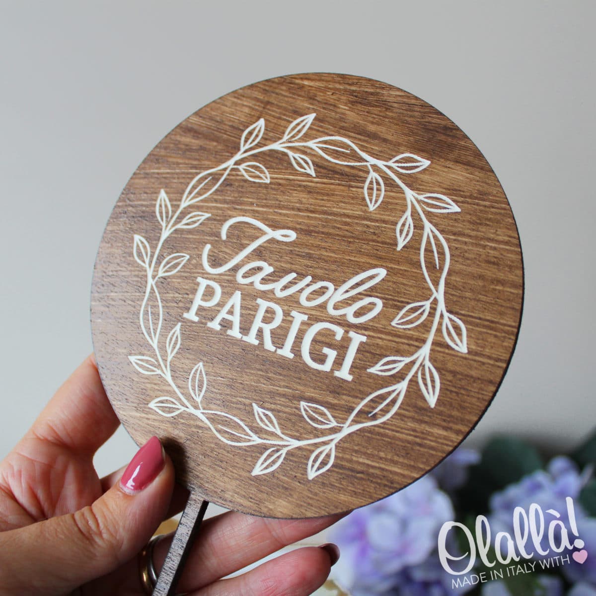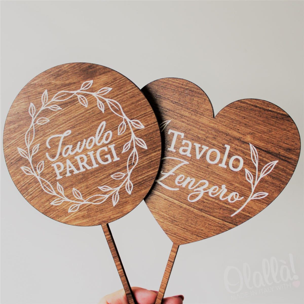 Semplice ed elegante segnaposto in legno realizzato a mano dotato di un lungo bastoncino che lo rende molto versatile nell’utilizzo, in quanto può essere posizionato in composizioni floreali, bottiglie o vasetti in vetro… insomma, dove preferisci!