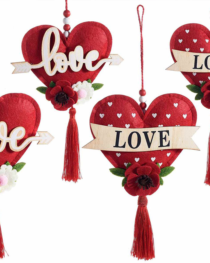 Caldi cuoricini in panno, con applicazioni in legno chiaro a contrasto, coccarde e perline! Appendili nella tua casa per donare subito un tocco di colore ai tuoi interni. Il tuo San Valentino sarà sicuramente originale!