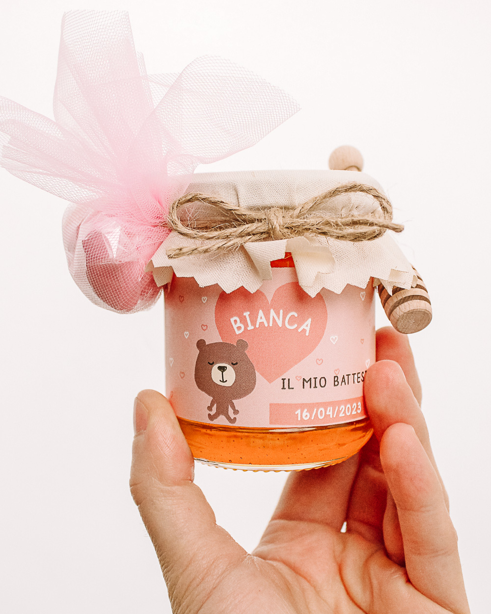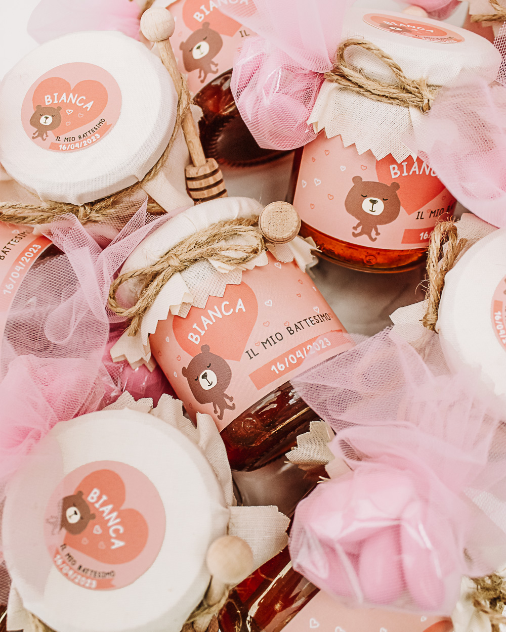 9 recensioni per Vasetti di Miele 125 gr con Etichetta Rosa Personalizzata con Orsetto – Idea Bomboniera per Battesimo