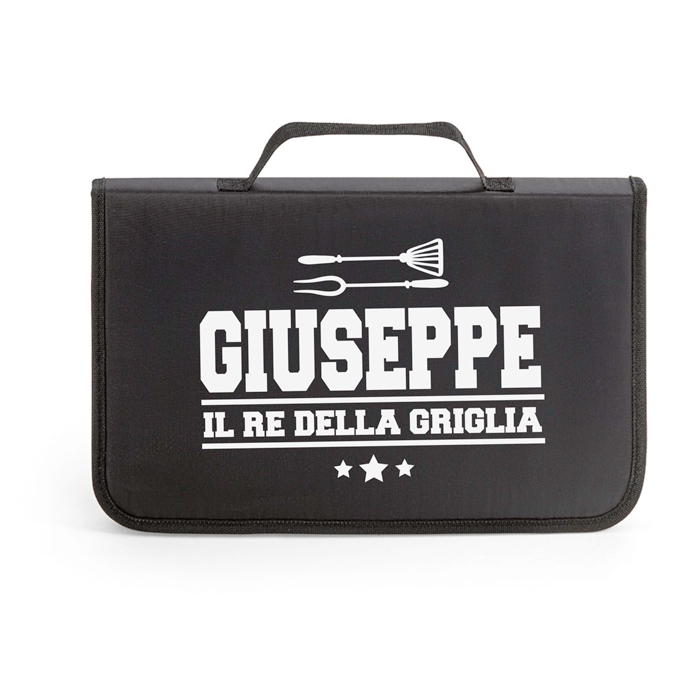 Stupisci il tuo papà del cuore o un caro amico amante del barbecue con questo incredibile set personalizzato contenente tutto l’occorrente per il barbecue! Il destinatario di questo regalo sarà molto fiero della sua valigetta personalizzata, grazie alla quale potrà dare sfogo a pieno titolo alle sue abilità culinarie alla griglia!