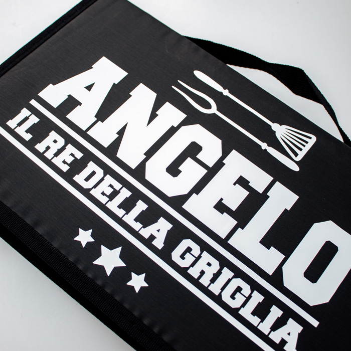 Se lo desideri puoi aggiungere un grembiule da cucina con la stessa personalizzazione della valigetta.