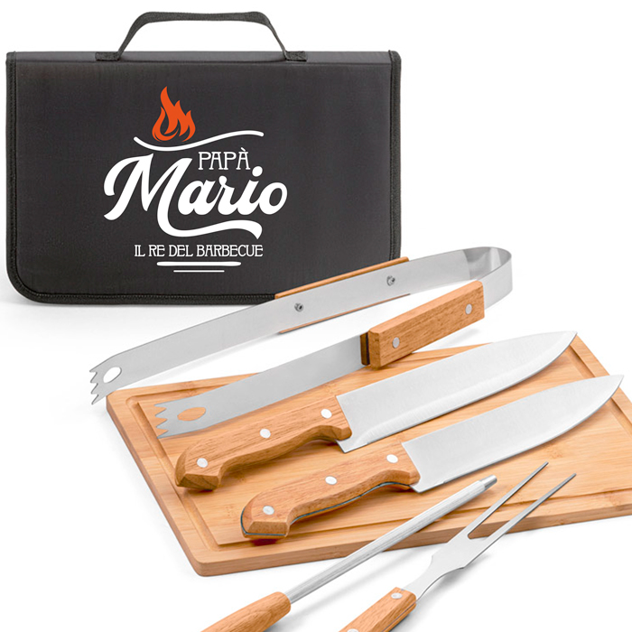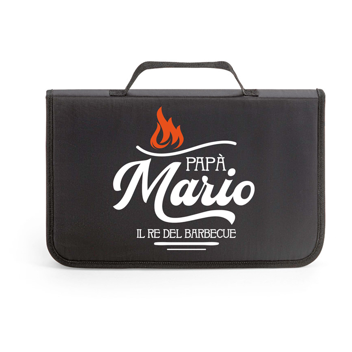 Stupisci il tuo papà del cuore o un caro amico amante del barbecue con questo incredibile set personalizzato contenente tutto l’occorrente per il barbecue! Il destinatario di questo regalo sarà molto fiero della sua valigetta personalizzata, grazie alla quale potrà dare sfogo a pieno titolo alle sue abilità culinarie alla griglia!