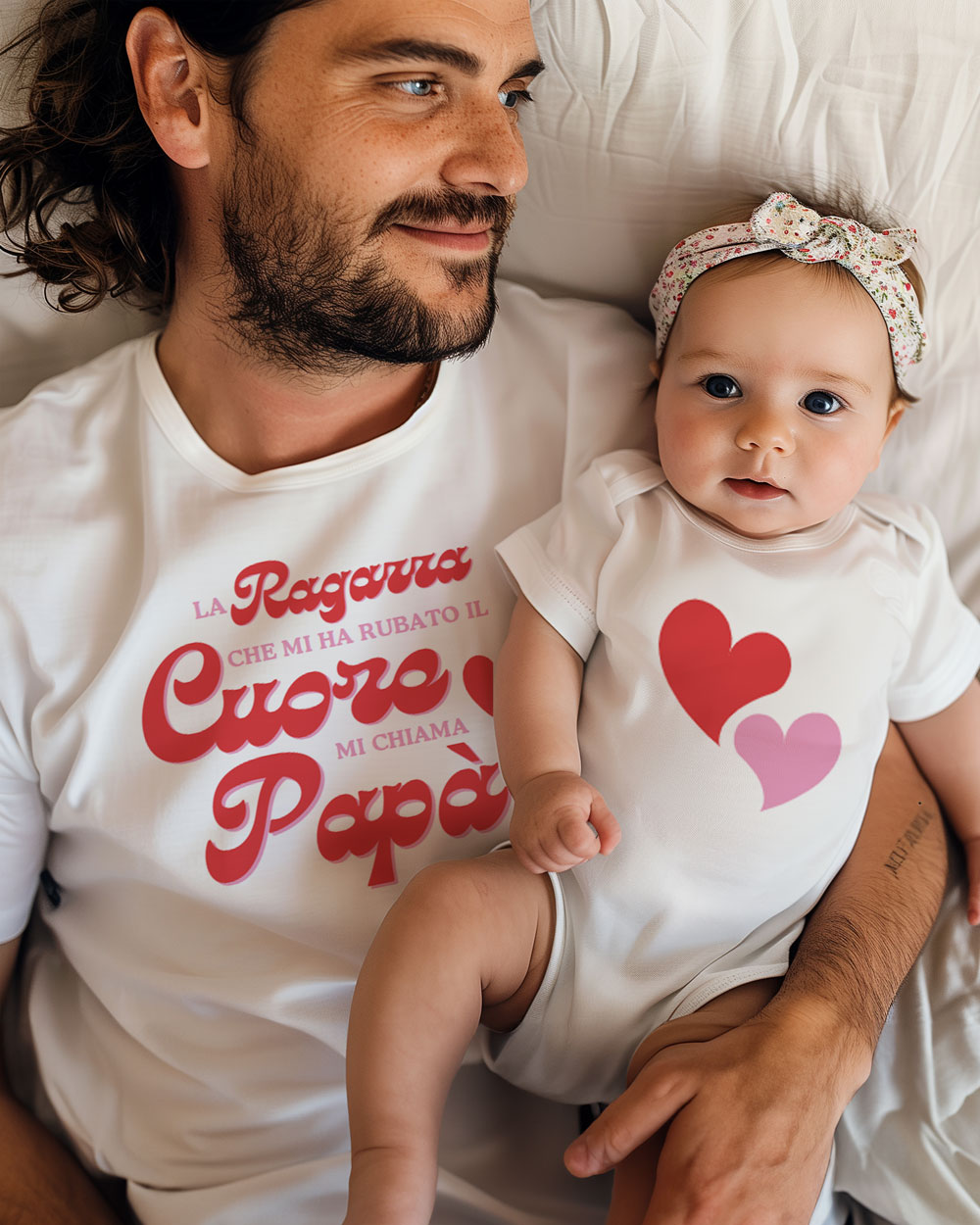 Immagina il sorriso di papà mentre indossa questa t-shirt abbinata al body della sua piccola principessa: un’emozione unica da vivere insieme e immortalare in tenerissimi scatti.