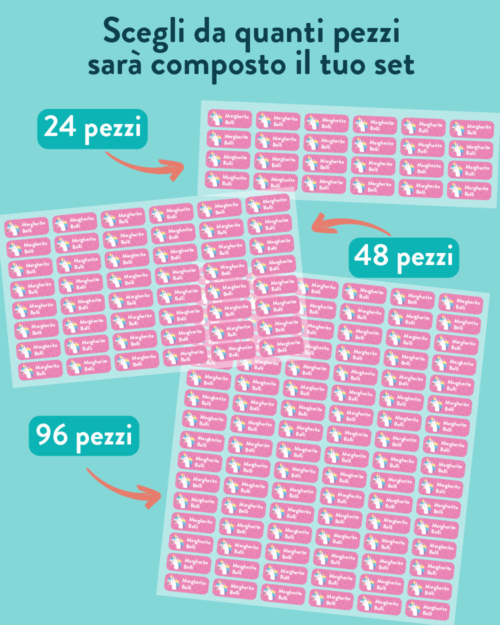 3. Personalizzazione completa: puoi scegliere il colore delle etichette e inserire il nome e il cognome del tuo bambino, rendendo ogni capo unico e facilmente riconoscibile. La personalizzazione è totale, permettendoti di creare etichette che riflettano lo stile e la personalità del tuo piccolo.