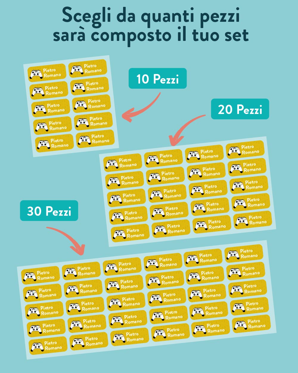2. Facili da Applicare: applicare le etichette è semplicissimo, proprio come attaccare una figurina. Basta staccare l’etichetta dal foglio e applicarla sull’oggetto desiderato. In pochi secondi, il materiale scolastico del tuo bambino sarà personalizzato e pronto all’uso.