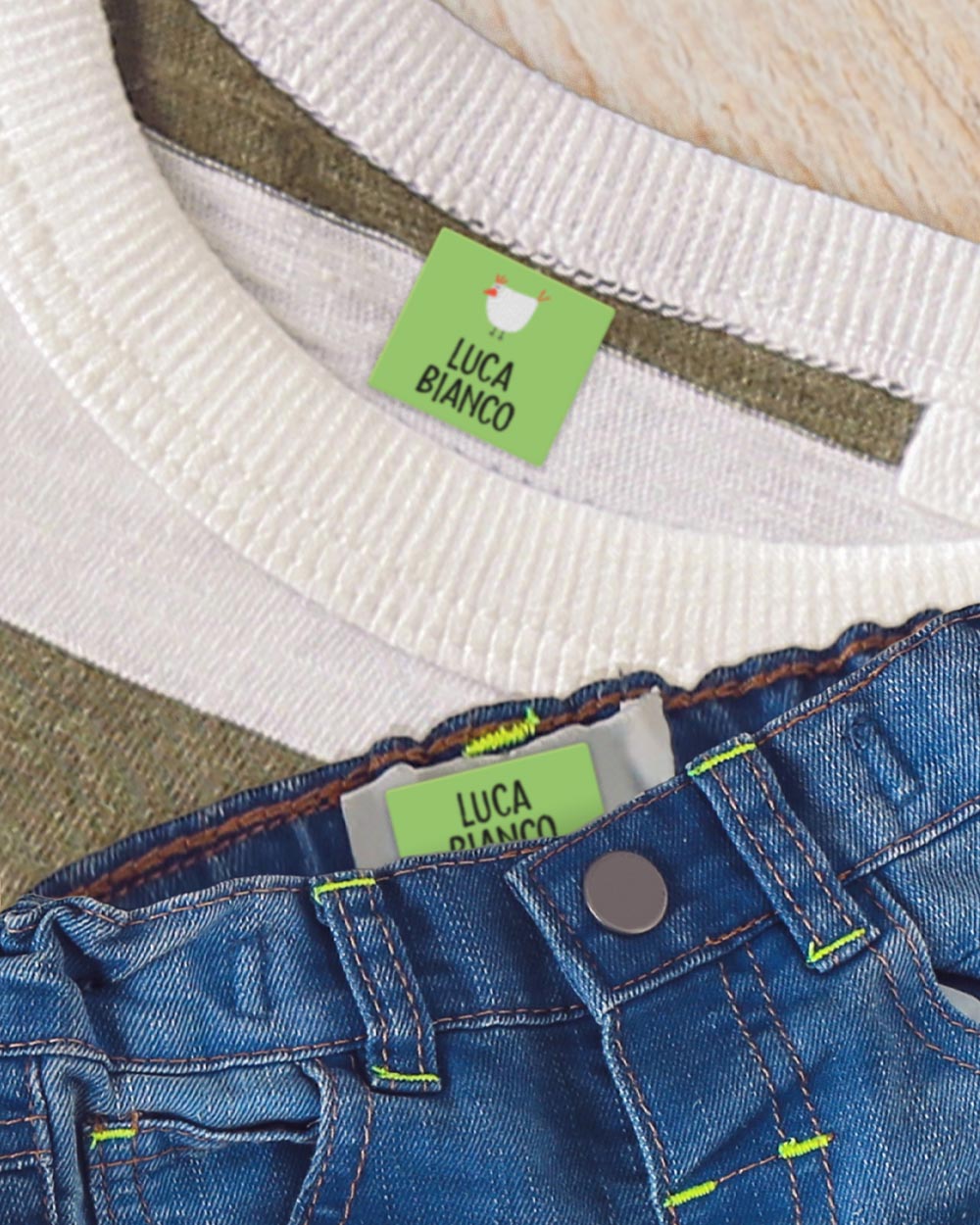 - Per non smarrire più i suoi oggetti: Sei stanco di perdere i vestiti del tuo bambino? Le nostre etichette termoadesive sono la soluzione perfetta per tenere traccia dei suoi capi e assicurarti che non vadano più perduti.