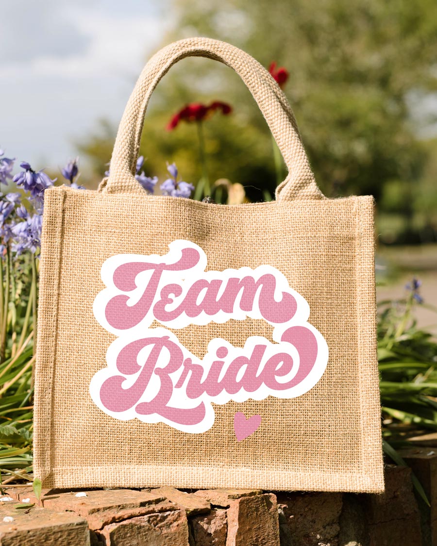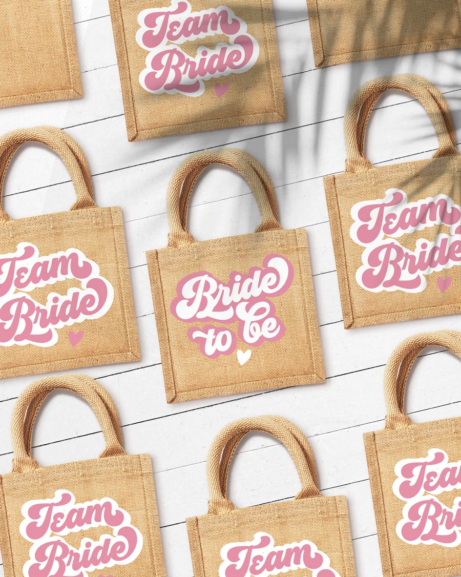 ATTENZIONE! Le scritte “Bride to Be” e “Team Bride” rimangono standard. La borsa della sposa “Bride to Be” presenterà scritta bianca, mentre le borse delle amiche della sposa “Team Bride” avranno la scritta in color rosa.