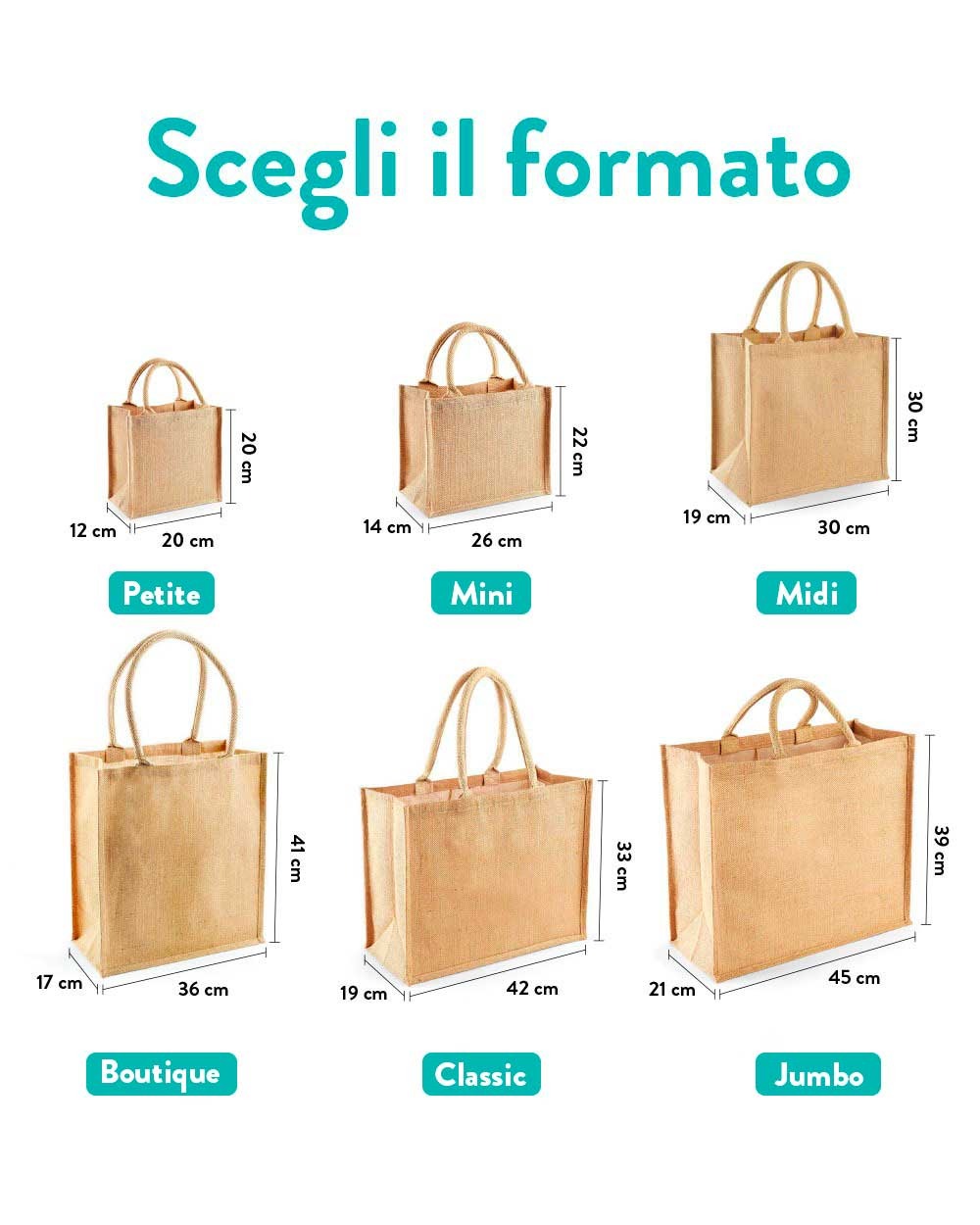 - Oggetto Simbolico e Utile: Le nostre bag in juta non sono solo un accessorio alla moda, ma rappresentano anche un simbolo tangibile di questo importante passaggio della tua vita. Robuste, capienti e resistenti, sono perfette per contenere tutti gli essenziali della festa.