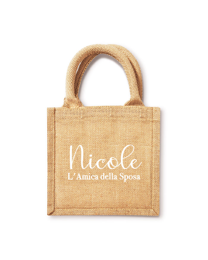 Fai del tuo addio al nubilato un evento da ricordare con il nostro set di 5 bag in juta personalizzabili. Non solo avrai un accessorio chic e funzionale, ma anche un ricordo tangibile di un giorno speciale. Facciamo il massimo per darti il massimo.