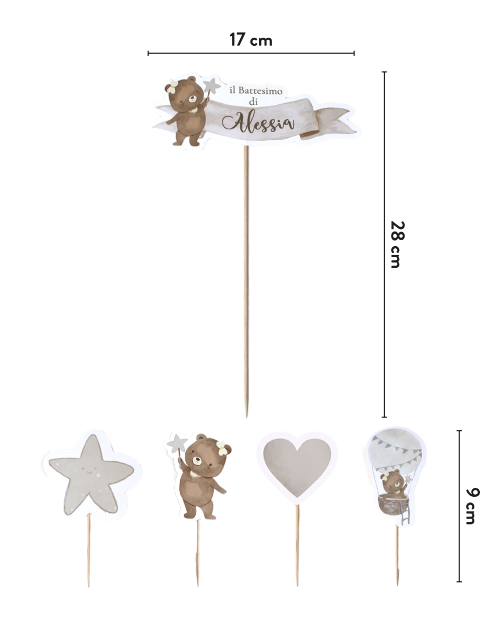 - Grafiche dolci e affascinanti: Con disegni di orsetti, stelline e cuoricini, questi cake toppers aggiungono un tocco delicato e amorevole.