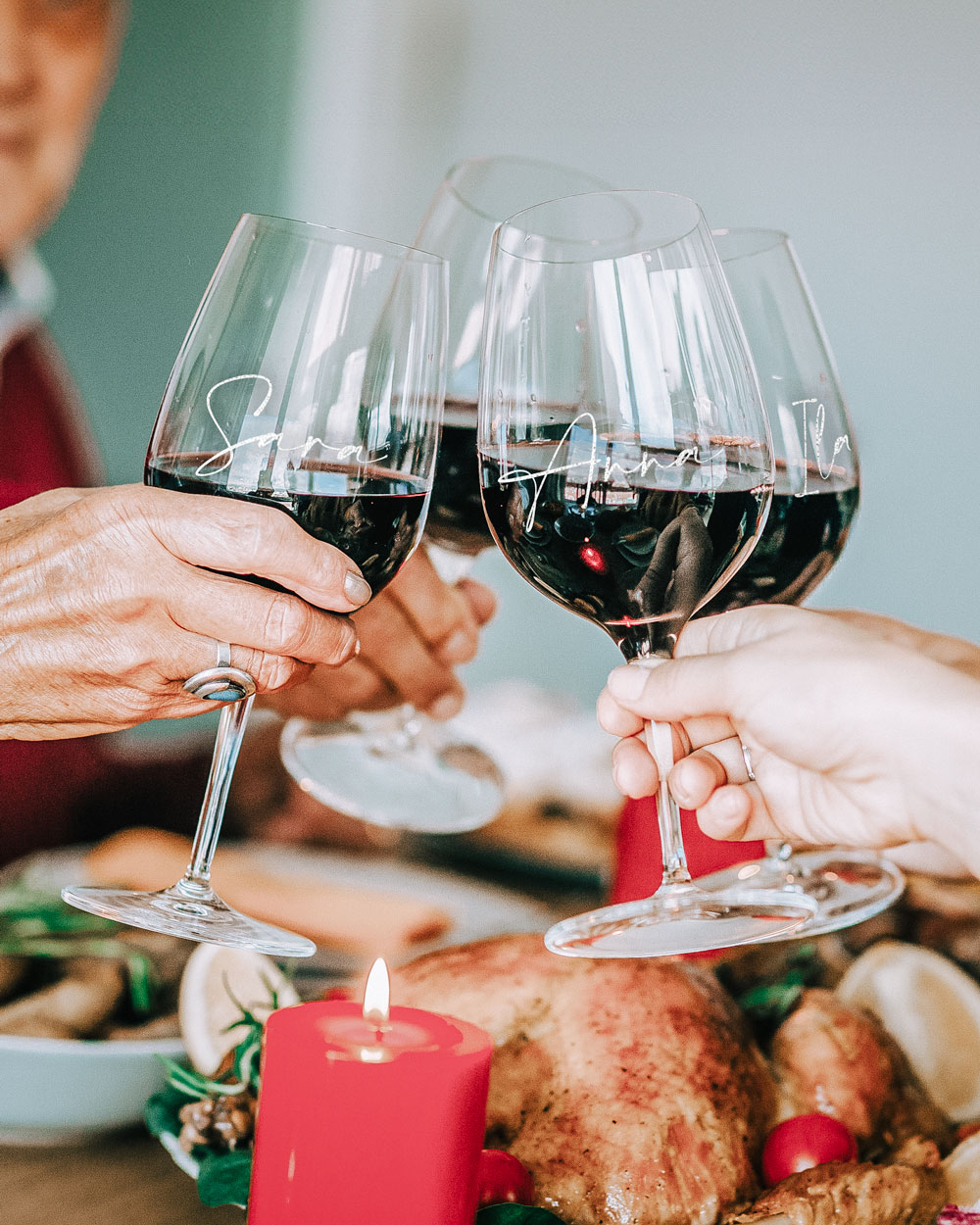 – Un Regalo Unico e Memorabile: Ogni calice può essere personalizzato con i nomi dei destinatari, rendendo il set un regalo che riscalda il cuore. Che si tratti di una cena tra amici o di una festa di famiglia, ogni brindisi diventa un momento speciale.