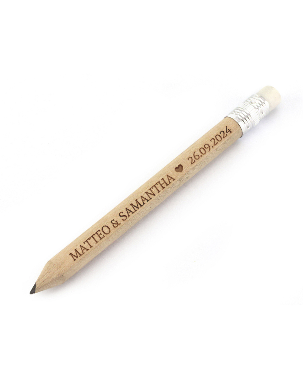 Mini Matite in legno con personalizzazione incisa a laser.