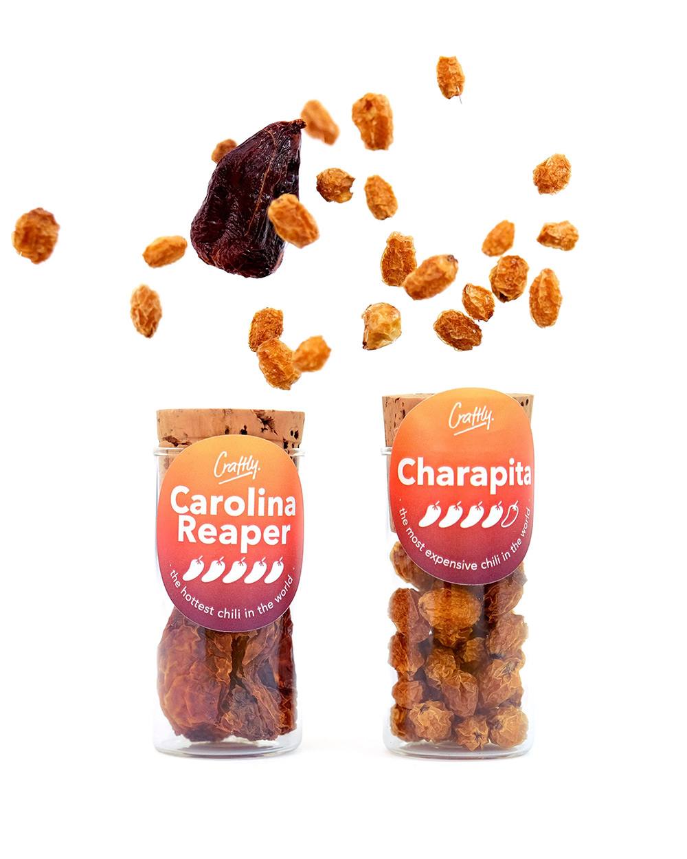 In questo set troverai peperoncini aromatici dal piccante al focoso: Ancho, Jalapeño, Cayenna, Charapita e per i più coraggiosi anche il Carolina Reaper.