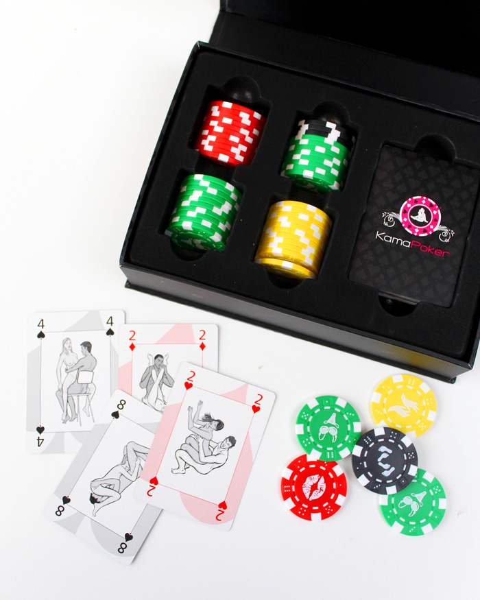 Box da gioco sexy “Kamapoker” con carte e fiches .