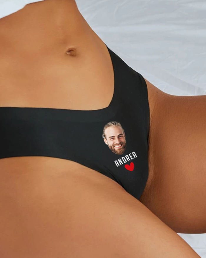Sexy Slip Intimo Nero Mutandine da Donna con Retro in Pizzo e Personalizzabile con la Foto del Partner, Cuore e Nome – Idea Regalo di San Valentino Divertente e Hot per Lei