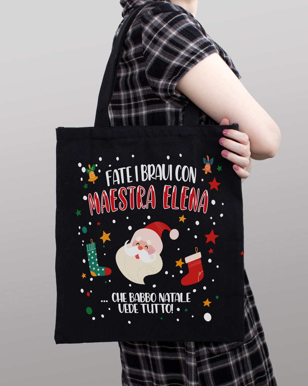 Recensisci per primo “Shopper Personalizzabile “Fate I Bravi che Babbo Natale Vede Tutto!” – Idea Regalo di Natale per Maestre”