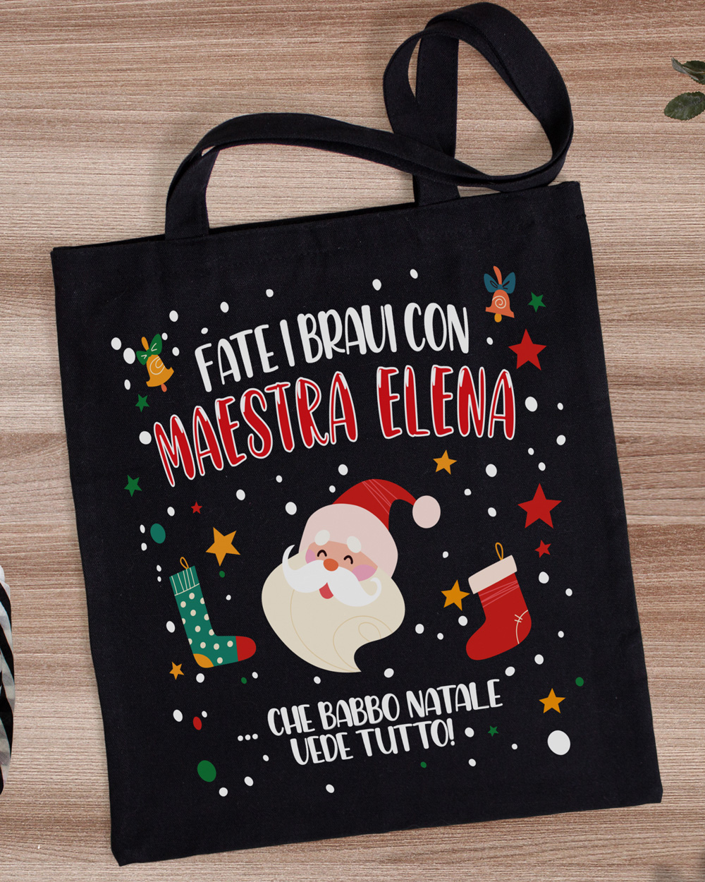 Shopper Personalizzabile “Fate I Bravi che Babbo Natale Vede Tutto!” – Idea Regalo di Natale per Maestre