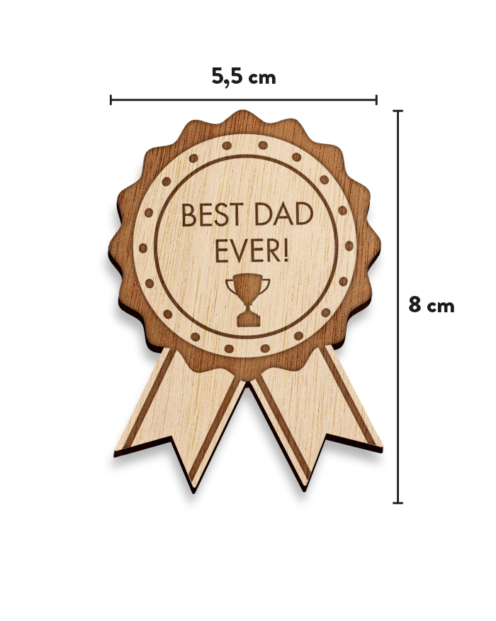 UN REGALO ORIGINALE PER LA FESTA DEL PAPÀ Assicurati che il tuo papà sappia quanto è speciale ed unico per te donandogli questa spilla a forma di coccarda con il premio di “Best dad ever”(miglior papà di sempre). Sarà super orgoglioso di indossarla il giorno della Festa del papà!