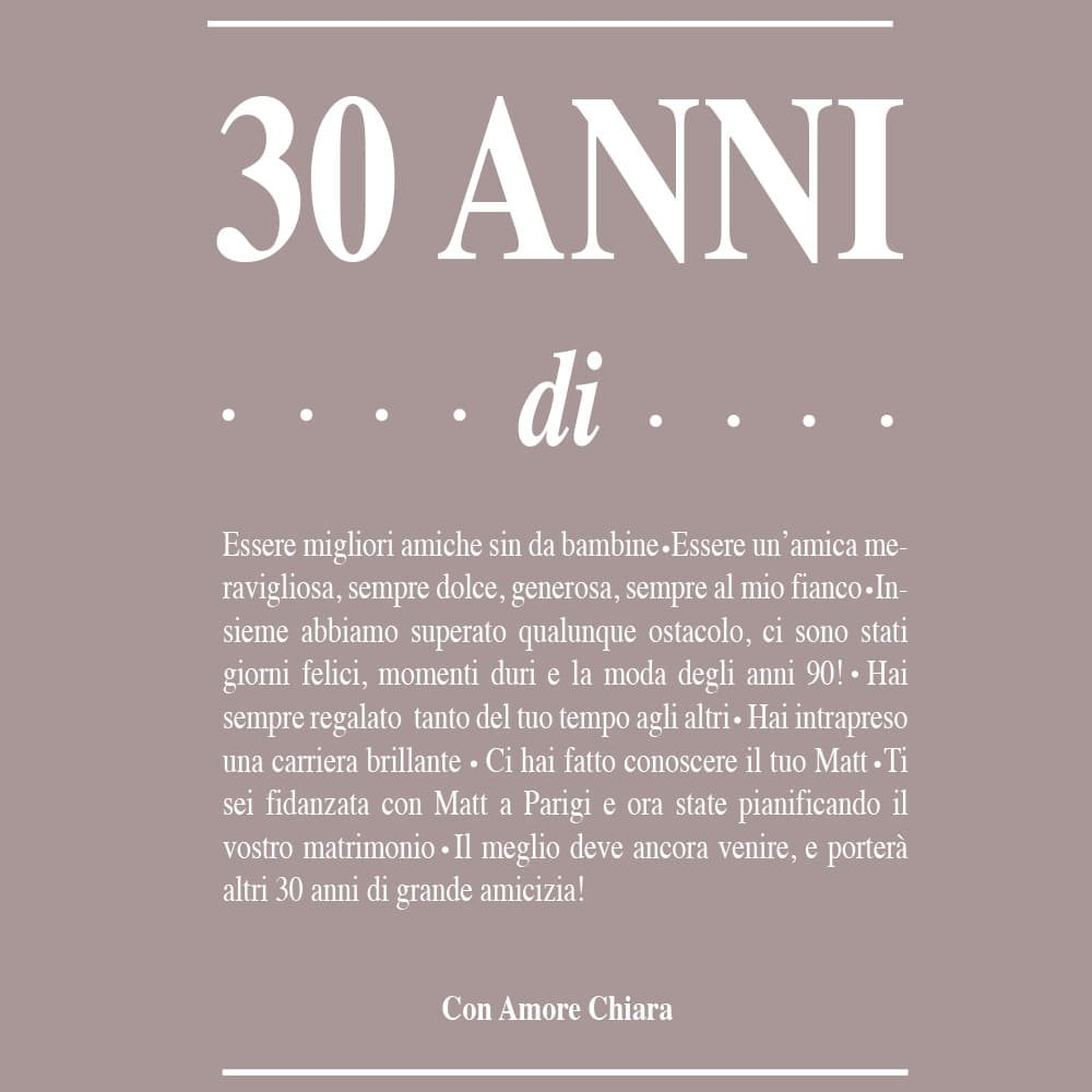 Simpatica ed originale stampa per il compleanno di un amico o amica, disponibile in 2 diversi formati, realizzata su pregiata carta artistica ruvida. Può essere un modo alternativo per creare una dedica, o semplicemente raccogliere gli aneddoti più divertenti, o le caratteristiche migliori del festeggiato. La possibilità di personalizzazione libera ti da l’opportunità di scrivere tutto ciò che vuoi, i nostri grafici saranno a tua disposizione per adattare l’impaginazione in base a ciò che vuoi sia scritto nella stampa. La possibilità di acquistare anche la cornice la rende un’idea regalo unica, così il festeggiato potrà appenderla in casa a mò di quadro, avendo sempre sotto gli occhi le parole che gli dedicherai.