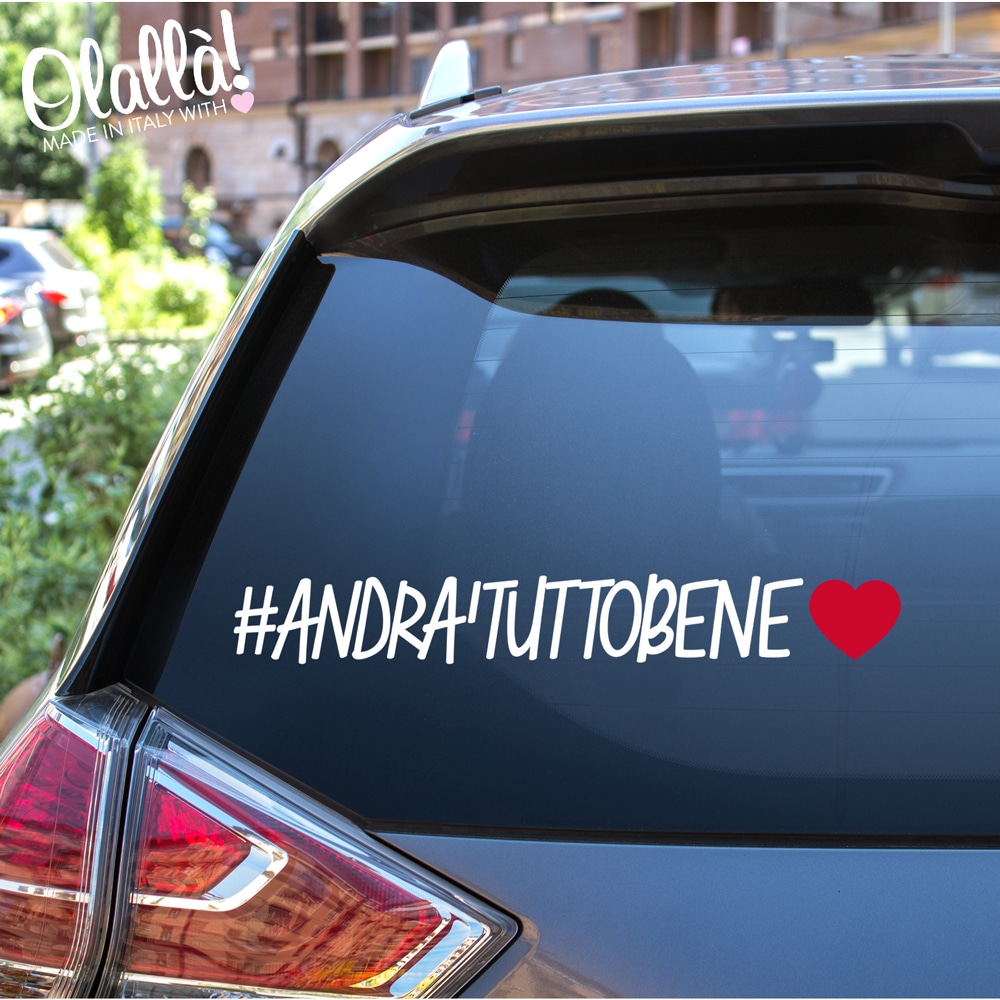 Dimensioni 30 cm per 12 circa con la frase #andràtuttobene. A seconda della frase scelta potrà quindi variare la lunghezza dell’adesivo.