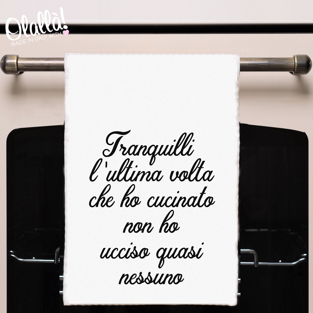 Bellissimo strofinaccio personalizzato con la tua elegante dedica, pensato come regalo per amici e parenti che amano stare dietro ai fornelli con un pizzico di ironia!
