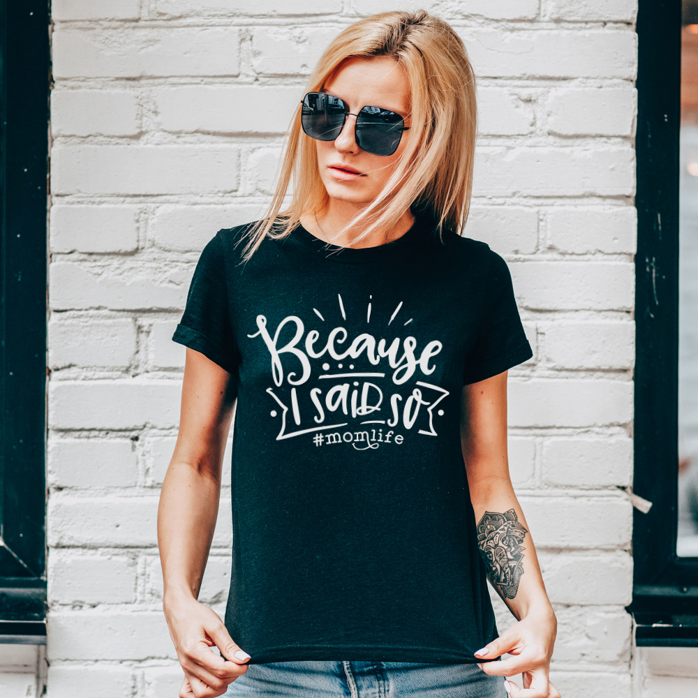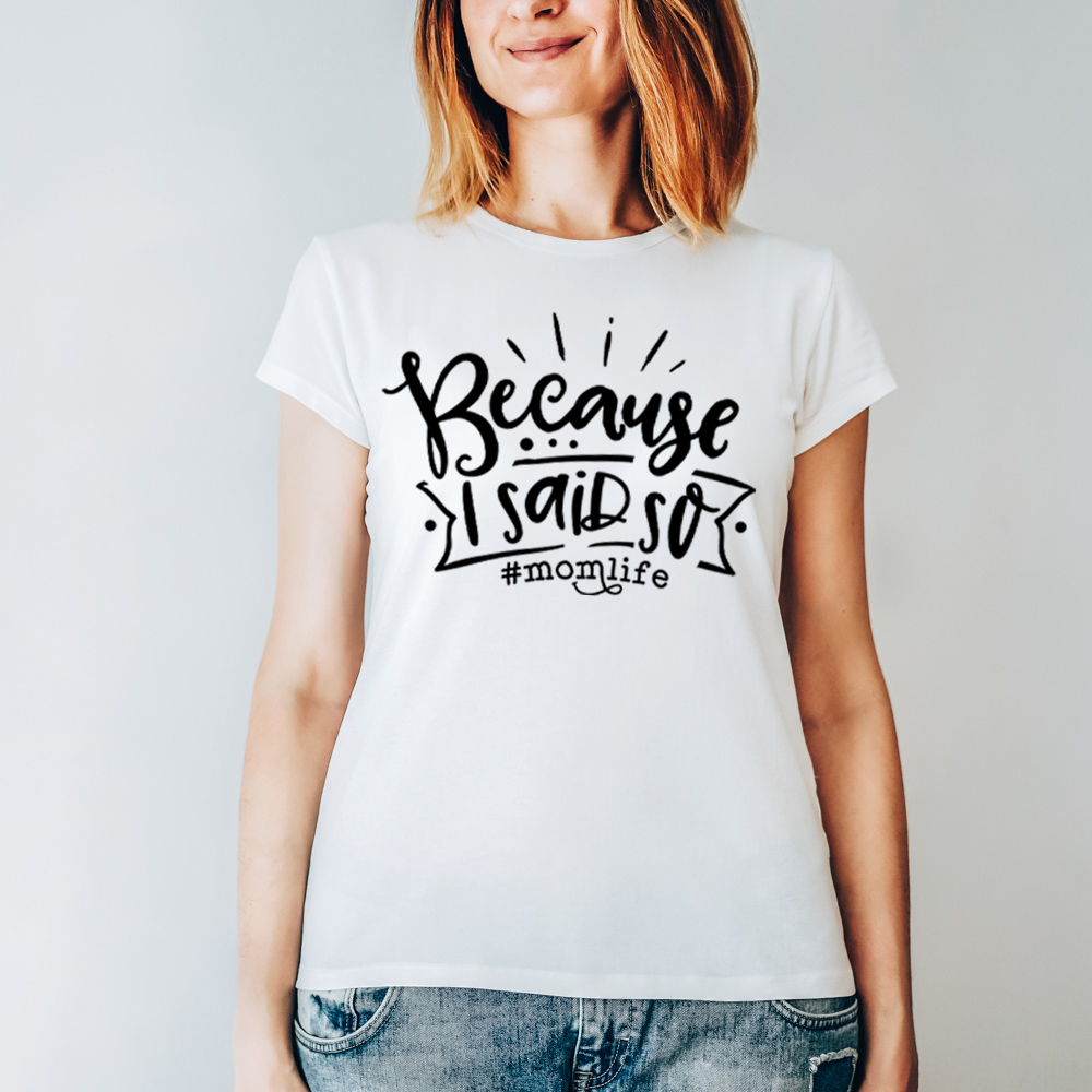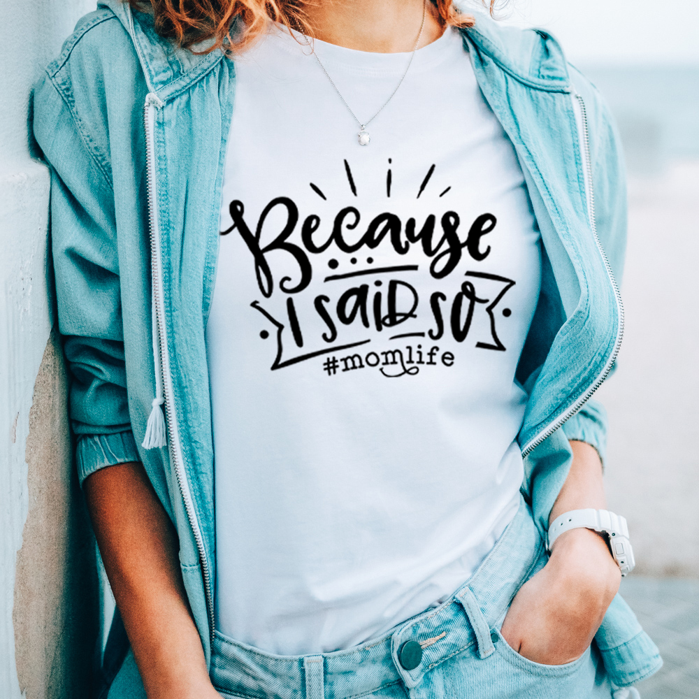 Bellissima T-Shirt per la mamma con la scritta “Because I Said So #momlife”. Questa bellissima t-shirt sarà un regalo perfetto per strappare un sorriso alle vostre mamme del cuore! Se la vita da mamma è spesso frenetica, questa maglietta è l’ideale per riderci su!