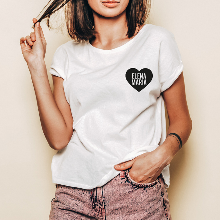 Originalissima T-Shirt da personalizzare per la mamma, per stupirla il giorno dell’8 maggio, ovvero la festa della mamma! È possibile personalizzare la t-shirt scegliendo il colore del cuore e i nomi da inserire all’interno.