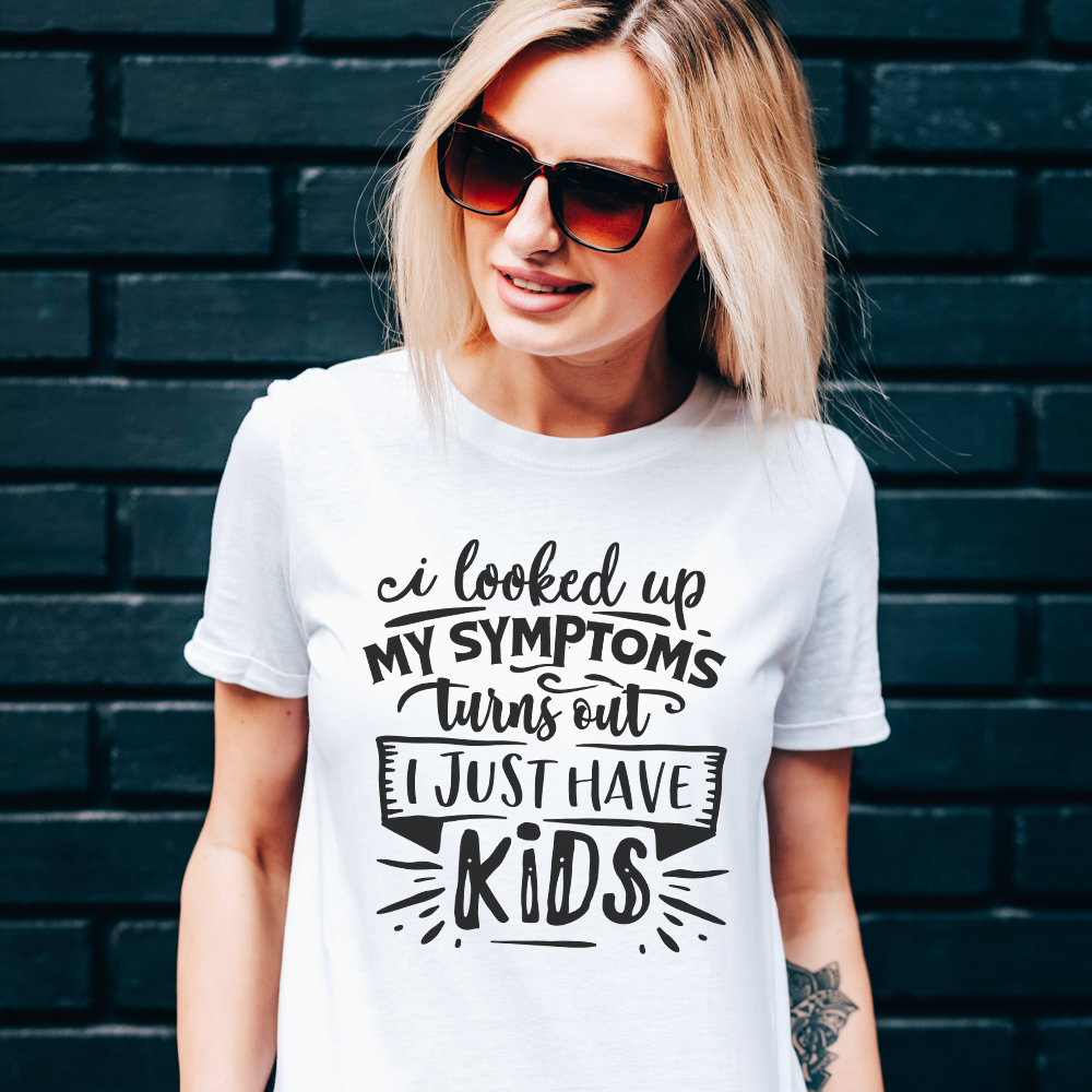 Magnifica T-Shirt per la mamma con la scritta “I Looked Up My Symptoms Turns Out I Just Have Kids”. Questa stupenda t-shirt sarà un regalo perfetto per tutte le mamme che hanno da poco avuto dei figli e che stanno scoprendo questa nuova vita!